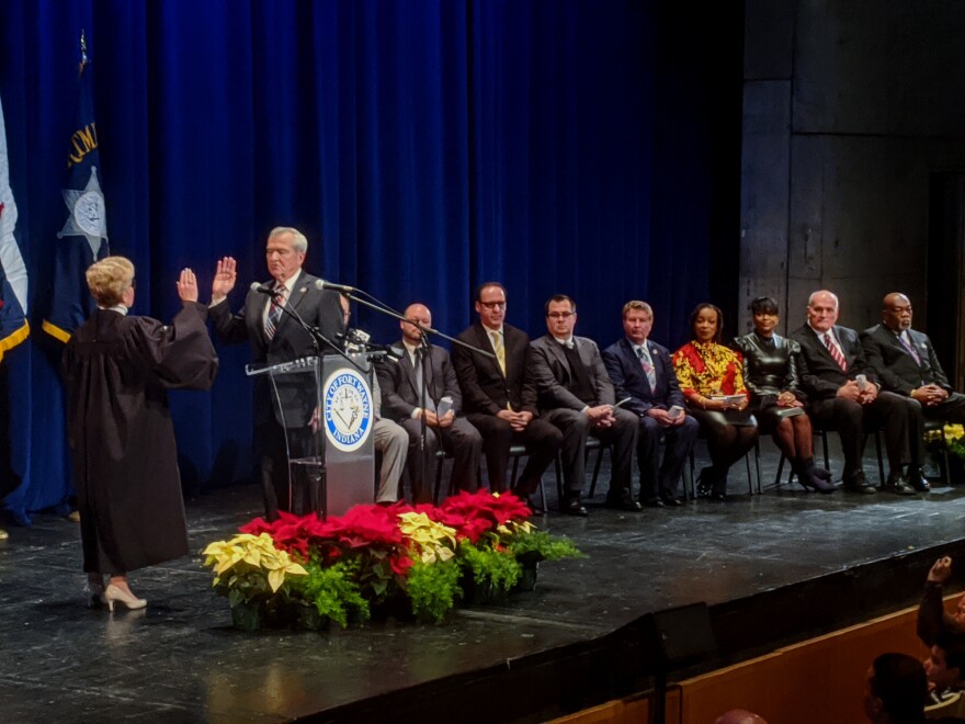 Henry’s inauguration begins an unprecedented fourth term as Fort Wayne’s mayor. He won election in November with 61% of the vote over Republican challenger Tim Smith.